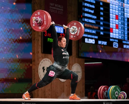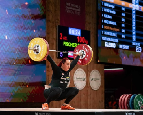 Die 24-jährige Sportsoldatin Sarah Fischer vom AC Union Krems konnte nach ihrer verpatzten EM im Frühjahr bei der WM in Forde/NOR wieder mit guten Leistungen aufwarten. Sechs gültige Hebungen zauberte sie auf die Plattform. Am Ende standen 100 kg im Reißen, 126 kg im Stoßen sowie 226 kg im Zweikampf im Wettkampfprotokoll.