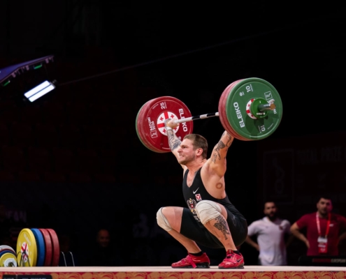 Elias Simbürger: „Fühlte mich in guter Verfassung, aber leider lief der Wettkampf für mich nicht ganz nach Wunsch. Im Reißen hätten die 150 kg nach meinen Trainingsleistung möglich sein müssen. Im Stoßen schaute das Betreuerteam Sargis Martirosjan & Ewald Fischer auf den Schweizer Tschan, dass wir den noch im Zweikampf überholen“.