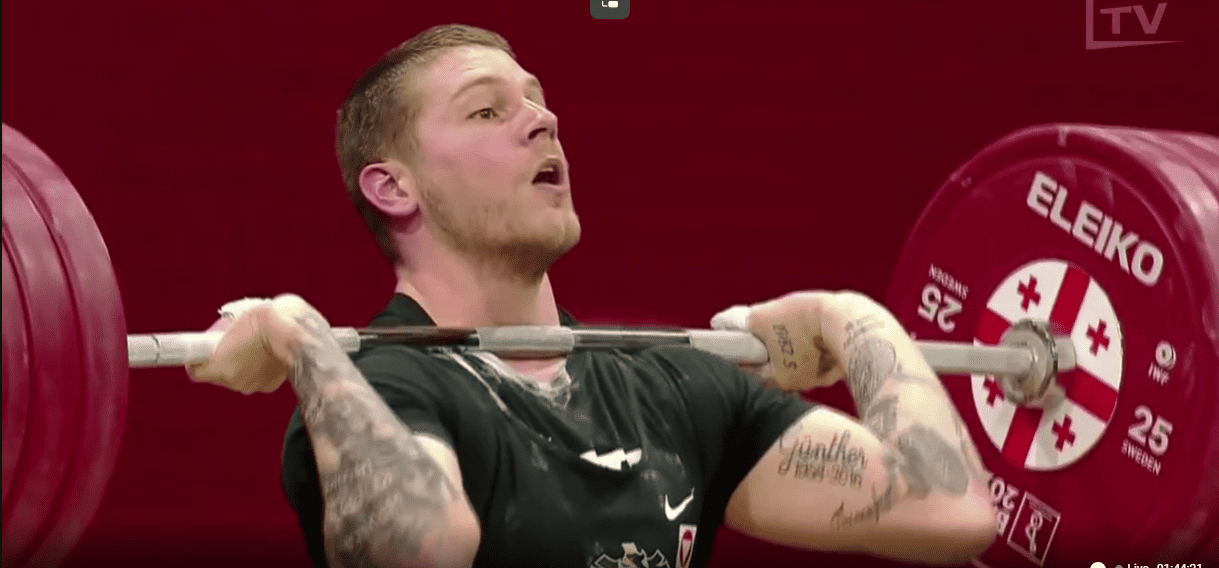 Nach dem Ende der A-Gruppe konnte sich der 22-jährige Elias Simbürger über seine Platzierung unter den Top Ten im Stoßen und Zweikampf sehr freuen.